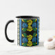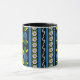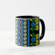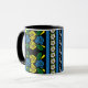 Canal boat and narrowboat owners will love this mug! It features a traditional 'roses and castles' style pattern of yellow and blue roses, white daisies and stripes