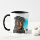 Um belo retrato de um Cachorro Rottweiler é a característica em dois lados desta caneca. Cada imagem é colocada sobre um fundo azul brilhante de filtro. Entre as duas imagens está o texto que descreve esse companheiro leal e corajoso, com "o cão ROTTWEILER" em preto no fundo. Todo o texto é facilmente personalizado para qualquer coisa que você preferir; descreva seu próprio amigo leal!