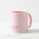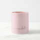Caneca Personalizada Minimalista Feminina Simples Rosa Bege Elegante Monograma Nome Assinatura Script Dourado. Estes desenhos apresentam seu primeiro nome em uma bonita tipografia de letra manuscrita com cauda swash em cor dourada sobre um fundo rosa bebê ou rosa bege claro. Fácil de personalizar. Ótimo presente feminino e elegante para aquecimento de casa, também para aniversário, festa de 16 anos, dia das mães, casamento, chá de noiva, chá de bebê, festa de formatura e é para a garota que ama coisas únicas e estilosas.