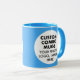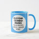 Round LIGHT BLUE double image frame custom Combo Mug for photo or logo, 11 oz., 3.2" diameter x 3.8" high, with LIGHT BLUE background double image frame (two individually customizable design areas) providing maximum coverage of the mug in LIGHT BLUE. See store for more templated font options. The background color has been chosen to closely resemble the combo mug inside and handle color but may not match exactly, due to the difference between printing and enamel tones.