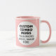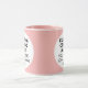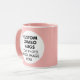 Round PINK double image frame custom Combo Mug for photo or logo, 11 oz., 3.2" diameter x 3.8" high, with PINK background double image frame (two individually customizable design areas) providing maximum coverage of the mug in PINK. See store for more templated font options. The background color has been chosen to closely resemble the combo mug inside and handle color but may not match exactly, due to the difference between printing and enamel tones.