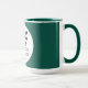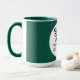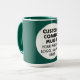 Round HUNTER GREEN single image frame Large custom Combo Mug for photo or logo, 15 oz., 3.4" diameter x 4.5" high, with HUNTER GREEN background single image frame (one central customizable design area) providing maximum coverage of the mug in HUNTER GREEN. See store for more template options. The background color has been chosen to closely resemble the combo mug inside and handle color but may not match exactly, due to the difference between printing and enamel tones.