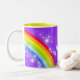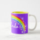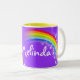 Arco-íris brilhante e colorido "que seus" miúdos conhecidos agridem. Presente perfeito para uma criança vibrante. A caneca lê: Melinda ou personaliza esta caneca com o nome de sua escolha até 7 letras. Caneca projetada exclusivamente por Sarah Trett.
