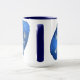 Um nome monograma de caneca K com um brilho brilhante de tinta azul real com borboletas azuis é uma bela adição a este design que pode ser ajustado para ter qualquer nome para o amante do café em sua vida.