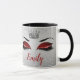 Esta espantosa caneca rubi vermelha-reluzente monograma apresenta uma coroa da rainha prateada e um par de tampas oculares com pincel vermelho rubi, uma camada de efeito diamanté com longas lascas pretas sobre um fundo de efeito reluzente prateado. Personalize com o nome de sua escolha, combinando Ruby Red. Concebido por Jacqueline.