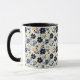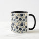 Caneca Rustic Dark Blue Beige Flower Folk Art Print