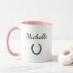 Caneca russa ocidental com um design de ferradura de sorte. Com a tipografia de script preto, este item pode ser personalizado com seu próprio texto. Excelente de adicionar talento country à sua bebida quente!