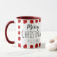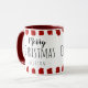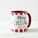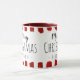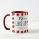 Diga "Feliz Natal" com esta caneca fofa e festiva, com a saudação de "Feliz Natal" em roteiros pretos e fontes escritas à mão, e realçada com uma russa borda vermelha listrada em um fundo branco. Personalize a tipografia com um nome e você tem a opção de substituir "Feliz Natal" por palavras de sua própria escolha. Projetado por © Tim Coffey.