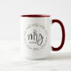 O seu primeiro Natal como Sra. é um momento especial. Dê-lhe um presente para mostrar seu novo sobrenome. Personalize esta caneca de Natal com a minha coroa de Natal moderna, com verde e vermelho sagrado. Escrita elegante e chic "Sra.". Um presente apreciado que ela gostaria de usar todos os anos durante o feriado.