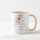 Uma caneca de café com uma escritura de citação inspiradora retrata um belo design de arte floral com rosas brancas e cor-de-rosa e verde. Apresenta uma parte da amada Bíblia Verse Psalm 23:3, "Ele restaura minha alma."