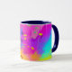 Isto não é uma xícara silenciosa. Rosa neon, amarelo elétrico, verde lima e azul ousado colidem em um salpico de tinta que parece saído de uma explosão de cores do final dos anos 90 e início dos anos 2000. É alto da maneira certa — alta energia, alta saturação, impossível de ignorar. Se seu estilo tende ao ousado, gráfico e um pouco nostálgico, isso pertence à sua rotação diária.