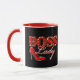 Quem é o chefe? Você está olhando sua terra arrendada esta caneca vermelha do logotipo da senhora do chefe que pode ser personalizada com uns calçados vermelhos de harmonização do salto alto adiciona demasiado um ponto de exclamação da forma!
