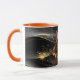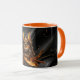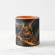 "Fuel your morning with the fearless energy of the Samurai Orange Cat. This premium Combo Mug features a highly detailed orange tabby in traditional Japanese armor with a flaming katana, set against a dramatic black background with shimmering gold sparks. With its stylish colored interior and handle, this 'Art meets Attitude' statement piece is perfect for gaming rooms, offices, or as a unique gift for any feline fan.