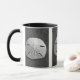 Uma concha de areia dólar repousa na costa da praia de areia com luz lateral suave do pôr do sol. Imagem é uma foto em preto e branco tirada em Playa Grande, Costa Rica na Costa do Pacífico. Personalize esta caneca de colar de concha marítima com seu próprio texto ou imagens usando a opção personalizar para fazer um presente especial de concha de concha!