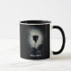 Uma caneca personalizada escura e misteriosa, com uma legal ilustração de um rosa preto estilo gótico/émen com sangue gotejante vermelho em suas pétalas. Um fundo preto de cor esbranquiçada no centro que destaca essa rosa macabra e modesta.