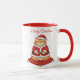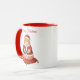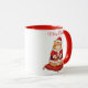 Enjoy your holiday drinks with a smile using this adorable Santa Paws Cat Christmas Mug! This two-tone ceramic mug features a festive red handle and interior trim, perfectly complementing the delightful design. The illustration showcases a fluffy, happy orange tabby cat dressed as Santa Claus, sitting on a soft red velvet pillow. Above the charming feline is the elegant cursive text, "Merry Christmas."