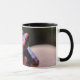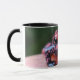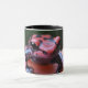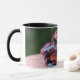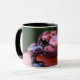 Esta caneca tem um sapo vermelho e preto giro nela.
