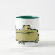 Você gosta do chá verde? Mesmo se não, você amará o sapo largo-mouthed verde dos desenhos animados nesta caneca. Gire-a ao redor para ver o que está olhando…
