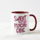 Embrace your complex personality with this fun and sassy graphic. Featuring the bold, edgy quote "Sweet but Psycho Chic" in a vibrant pink brush font, this design is all about attitude. A playful pink kiss mark adds the perfect touch of girly flair. It's the ideal statement for anyone who is a little bit sweet, a little bit sassy, and 100% chic.