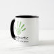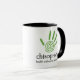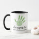 Esta caneca da quiroterapia caracteriza um impressão e um texto espirais verdes da mão que diga a "quiroterapia - saúde sem uma prescrição."