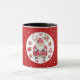 Um design festivo com Papai Noel e motivos folclóricos como: pássaros, árvores de inverno, pão-de-gengibre, Poinsettia também conhecida como Flor de Natal e Flocos de Neve.