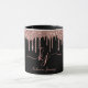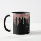 Escrita elegante, rosa-pinto-claro-rosa rosa Dourada Glitter Drips 2 Monograma Script em uma caneca personalizada preta monograma. Apresentando um falso quadro de gotejamento com brilho, fonte cursiva grande de script monograma com letras duplas, com traços (iniciais de tamanho grande) e um nome de cheio em cor rosa-pincelada no fundo preto. É fácil personalizá-lo. presente feminino excelente para namorada, mãe, aniversário, casamento, chá de panela, doce 16 festas de aniversário e chás de fraldas, negócios, escritório doméstico, trabalho profissional e para qualquer pessoa que goste de coisas bonito de vidro.