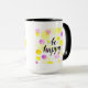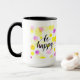 Citações inspiradas da caligrafia moderna - esteja feliz - no fundo cor-de-rosa e amarelo | Bigstock® dos pontos da aguarela - todos os direitos reservados.