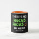 SEM HOCUS POCUS Personalizou o Mug de Halloween Cristão com nome PERSONALIZÁVEL. O design principal diz NO HOCUS POCUS IN AQUI em verde, branco e laranja, com dois mísseis apagados de cada lado. Na parte inferior, há um nome PERSONALIZÁVEL, onde você pode adicionar seu nome ou texto. Especialmente concebido para pessoas de fé que querem observar todos os Santos sem comprometimento. Escolha entre uma ampla seleção de cartões de Dia das Bruxas Cristãos, roupas e presentes, desenhados por Designs Bereanos.