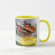Ciclo de vida pintado americano da borboleta da senhora; lagarta, crisálida, borboleta adulta - caneca de café.