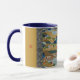 Imagem original de tecelagem, seda e linha de ouro da dinastia Qing do Museu de Arte de Cleveland. O personagem chinês Shou significa longevidade. Você consegue encontrar o personagem Shou na imagem? Está num pergaminho sendo estudado pelos números no pavilhão. Eu incluí o link se você quiser aproveitar essa tapeçaria em detalhes tanto quanto eu fiz no processo de design.https://www.clevelandart.org/art/1916.1337
