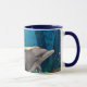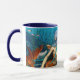 Dois amigos, uma bela sereia nadando com um golfinho num oceano de fantasia azul