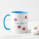 Esta caneca pode ser personalizada com o seu nome, para dizer "O seu nome é tricô e caneca natter". É decorado com bolas de fio rosado e agulhas para tricô. Este é um presente divertido para quem adora conversar, tricotar, crochê, artesanatos de fios, artesanato ou criar.