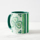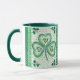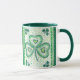 Uma grande caneca branca com lábio e alça verdes escuros e uma design de shamrock, de uma aquarela de Judy Adamson. Cartões de saudação e outros presentes também disponíveis.