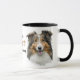 "A Sheltie kisses conserta tudo" declara esta caneca fofa para o dono do Shetland Sheepdog. A imagem em cada lado é uma imagem aquosa de uma Sheltie adorável.