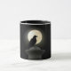 A moon shines bright behind a perched crow on a new age coffee cup.