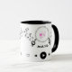 This unique mug showcases your love for music with its musical notes design and black handle.