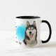 Um belo retrato de um Cachorro Husky Siberiano é a característica em dois lados desta caneca. Cada imagem é colocada sobre um fundo azul brilhante de filtro. Entre as duas imagens está o texto que descreve esse companheiro de amor leal e divertido, com "o cão SIBERIAN HUSKY" em preto no fundo. Todo o texto é facilmente personalizado para qualquer coisa que você preferir; descreva seu próprio amigo leal!