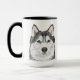 Caneca personalizada para seu Husky Siberiano. Personalizar com a imagem e o nome do seu cão; as fontes, cores e a cor da caneca também podem ser alteradas.