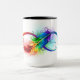 Símbolo infinito desenhado artificialmente com uma bela pena de arco-íris sobre fundo branco. Estilo de tatuagem.