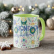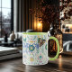 Caneca Símbolos celestiais boho chic em azul-turquesa e d
