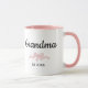 Simple Script Pink Girl Bow Grandma Est. (established) Year Mug. Script font design with a pretty pink bow. Switch out the date and switch "grandma" for how you call your grandmother. Add more years for more grandchildren. Contact designer for any customization questions.