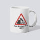 Sinal de aviso de Quayside ou da margem do rio. O sinal de trânsito avisa os motoristas de atravessar a parede para mergulhar na água. Texto personalizado.