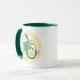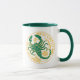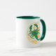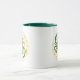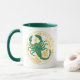 Sinal de escorpião do zodíaco em verde e amarelo numa caneca de café de duas tonalidades.