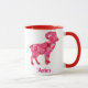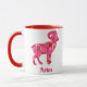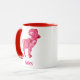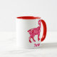 Mug no símbolo do símbolo solar astrológico Aries, num padrão de espiral fractal de vermelho e rosa coral profundo