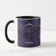 Embarque a mística da astrologia com nosso cartaz de zodíaco - Gemini - caneca de café com detalhes em cor branca, apresentando o fascínio cerâmico do Sinal Gemini sobre um fundo de aquarela roxa escura com estrelas. Personalize-o com o seu nome e mergulhe no reino místico de sinais estelares e horóscopos. Essa caneca da moda, adornada com detalhes elegantes, faz um presente perfeito para os entusiastas da astrologia e para aqueles que apreciam elegância personalizada.