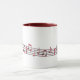 A corda vermelha artística da música nota a benevolência isto caneca vermelho-segurada com guarnição vermelha da borda! Adicione sua própria mensagem se desejado!