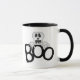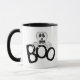 Sacos de tota, T-shirts, canecas, ímanes, botões e mais caros, com um crânio e ossos de mão segurando o texto que diz "BOO"!