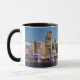 Caneca Skyline iluminada de Miami do centro no crepúsculo