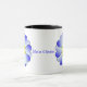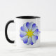 Slava Ucraniano numa caneca com design de corações azuis e amarelos feita para se assemelhar a um girassol, símbolo da Ucrânia
