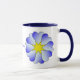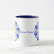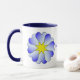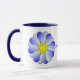 Slava Ucraniano numa caneca com design de corações azuis e amarelos feita para se assemelhar a um girassol, o símbolo da Ucrânia. Dentro azul.